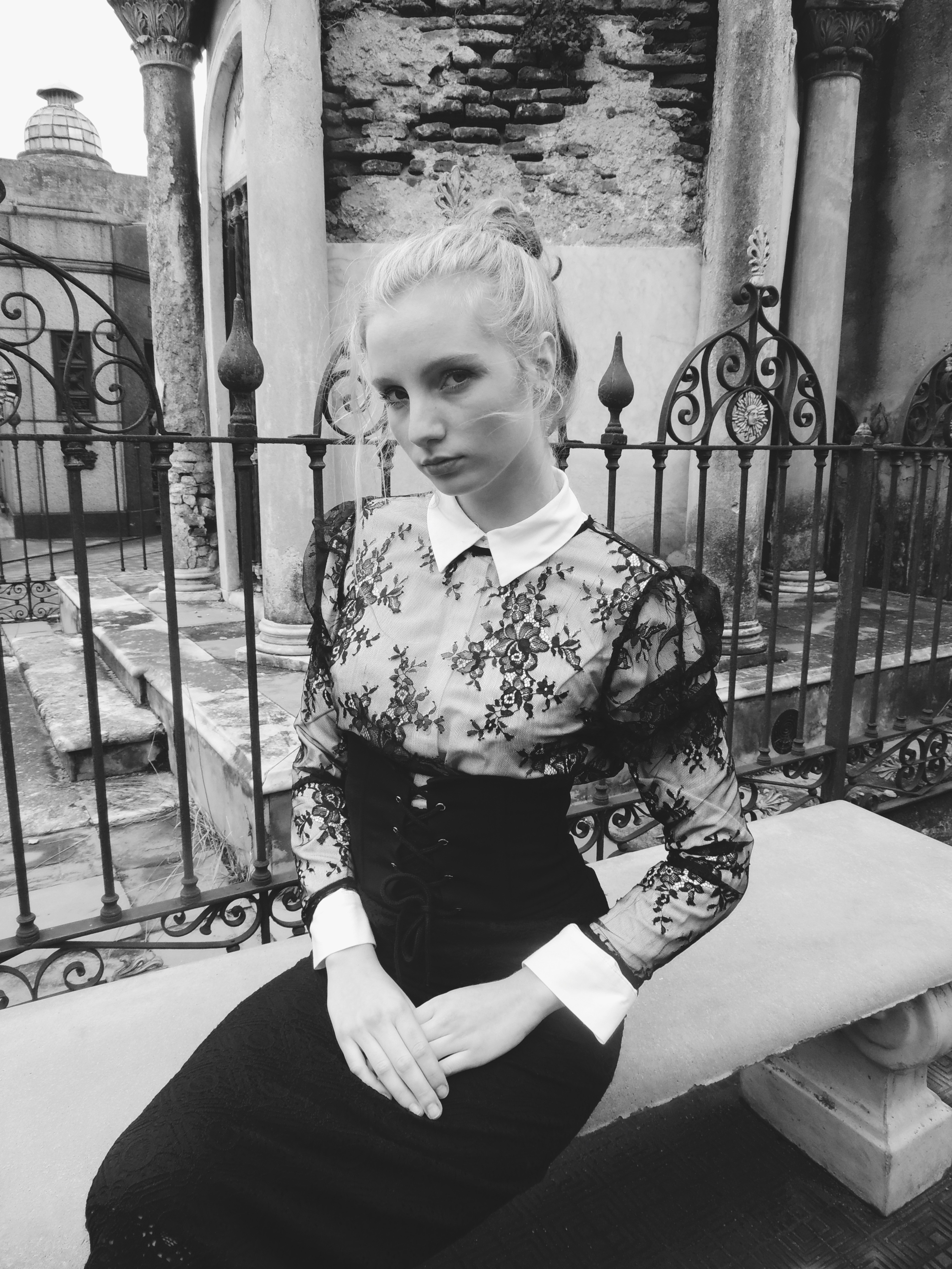 Encajes, transparencias y texturas delicadas dialogan con piezas de corte preciso, generando un equilibrio entre ornamento y minimalismo. El estilismo propone una feminidad elegante y segura, donde el lujo y la teatralidad del período se manifiestan de forma sutil y atemporal.